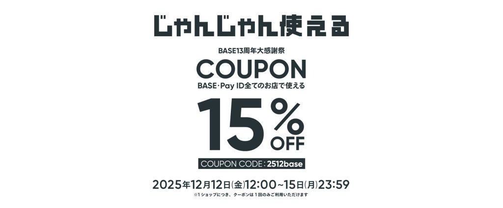 【12/12~15限定】BASE13周年大感謝祭